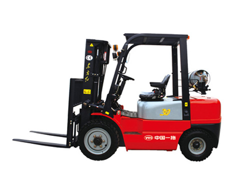 01、燃油叉車是無極變速箱,共有三個檔位(前進、中位檔、倒車檔),檔位手柄在方向盤左側(cè)下方的位置,車身底板上有三個腳踏板,左側(cè)是變速箱動力傳輸切除(分離)踏板,中間是輪胎制動的踏板(有氣剎或油剎)兩種類型,右側(cè)是發(fā)動機加速踏板。發(fā)動機是后置式,方向是后置式轉(zhuǎn)向(轉(zhuǎn)向是后置式)。是前置式驅(qū)動橋由無極變速箱傳輸扭矩,在方向盤右側(cè)有四個液壓控制手柄。